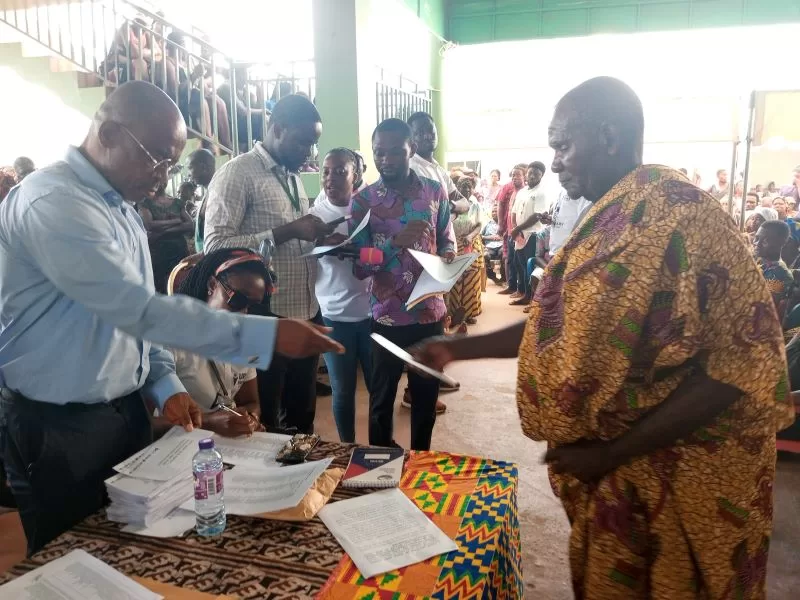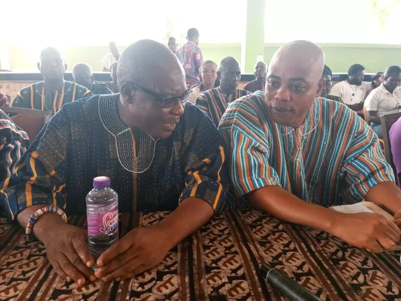Present at the event are: Torgbe Aklade Amedeker, Regent of Fenuku Stool, and Mr. Mensah Akaho, Stool father for Adabla Stool.