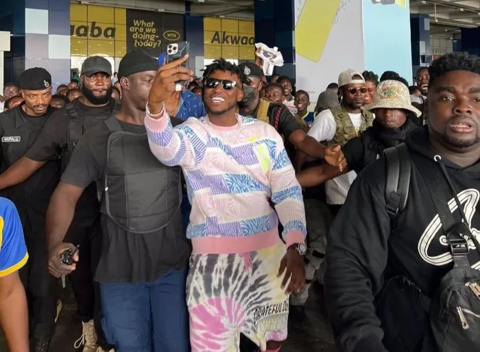 The award-winning musician was received at the Kotoka International Airport in Accra on Saturday, July 15, 2023, by scores of his excited fans and entertainment journalists from the leading television and radio stations in Ghana including GTV, GHONE, TV3, TV Africa.