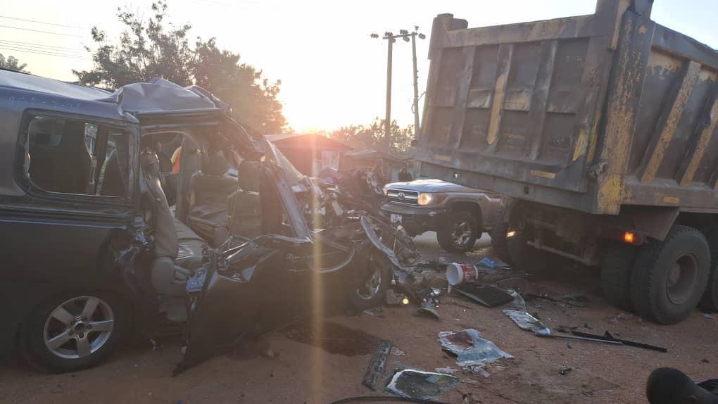 The accident involved a grey Toyota Noah (GX 422-25) and a tipper truck (GT 725-19).