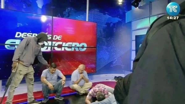 Employees were forced on to the floor during the broadcast by the public television channel TC in the city of Guayaquil before the live feed cut out.