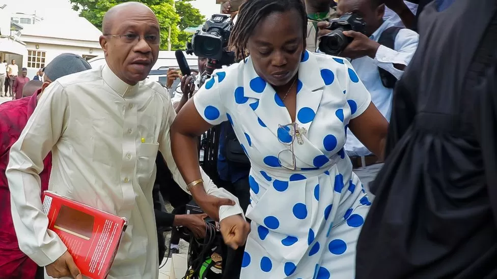 Mr Emefiele looked a shadow of the man that controlled the finances of Nigeria – Africa’s largest economy – when he arrived at court in Lagos.