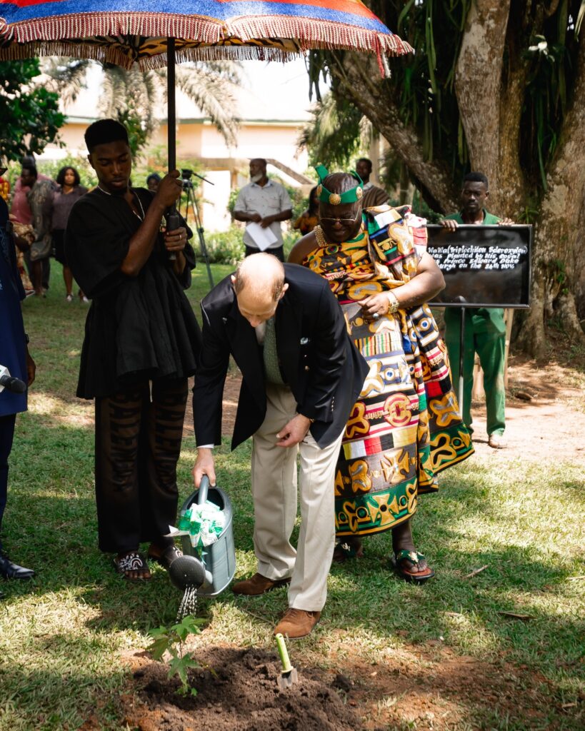 The visit ended with a symbolic tree-planting ceremony alongside the Aburihene, near one planted by Queen Elizabeth II.