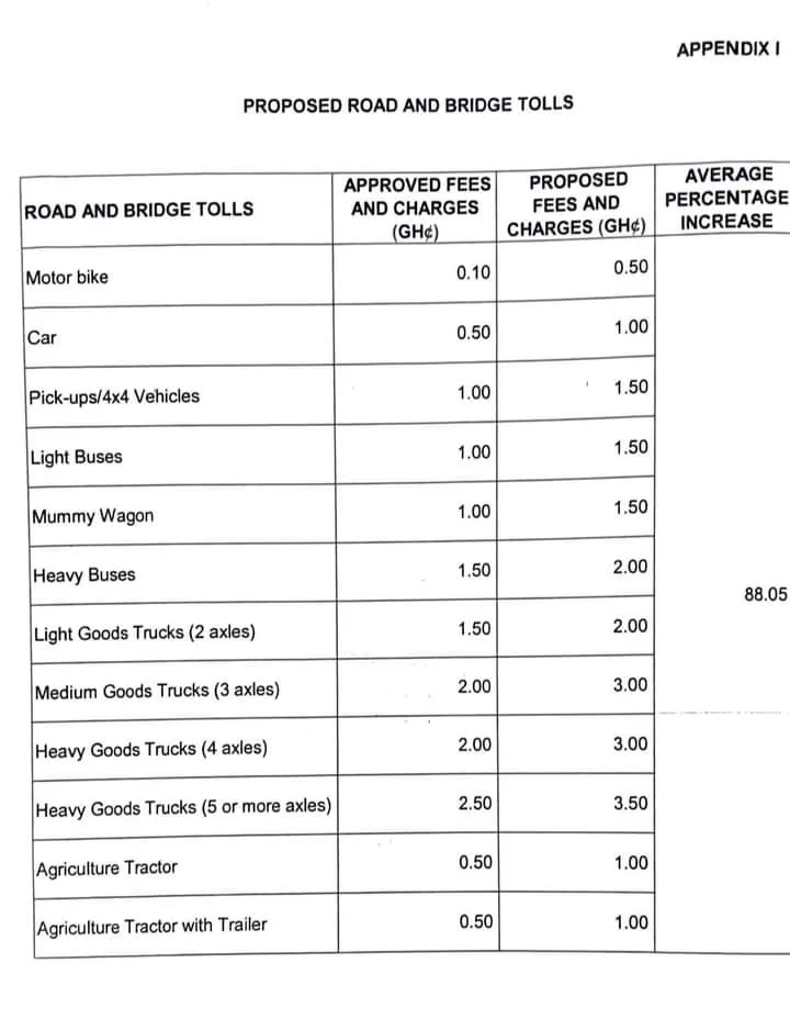 Road toll: Finance Ministry proposes GH¢0.50 for motorbike GH¢1 for car