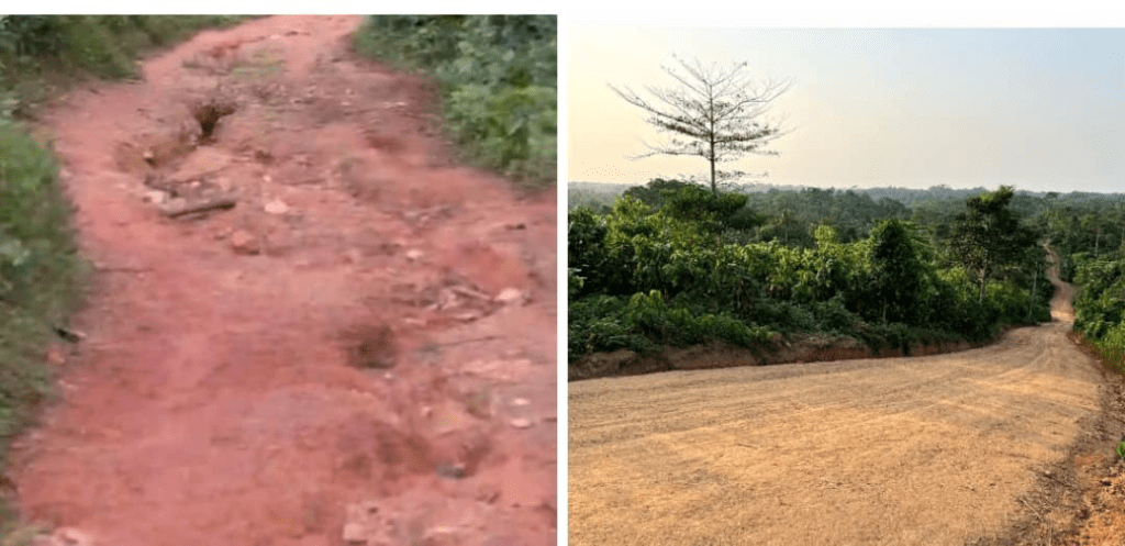 The poor nature of the 17-kilometer road network has been a great source of worry to cocoa farmers, pregnant women, and sick people in these communities.