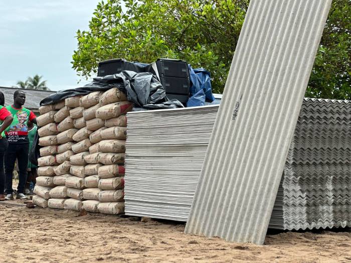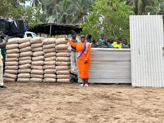 Madam Affo-Tofey therefore bought sand and roofs to start the work. She also donated 50 bags of cement and a trip of sand for the commencement of the project.