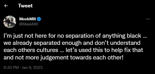 The 35-year-old reiterated in a subsequent tweet: “I’m just not here for no separation of anything Black… We already separated enough and don’t understand each other’s cultures… Let’s use this to help fix that and not [be] more judgement[al] towards each other!”.