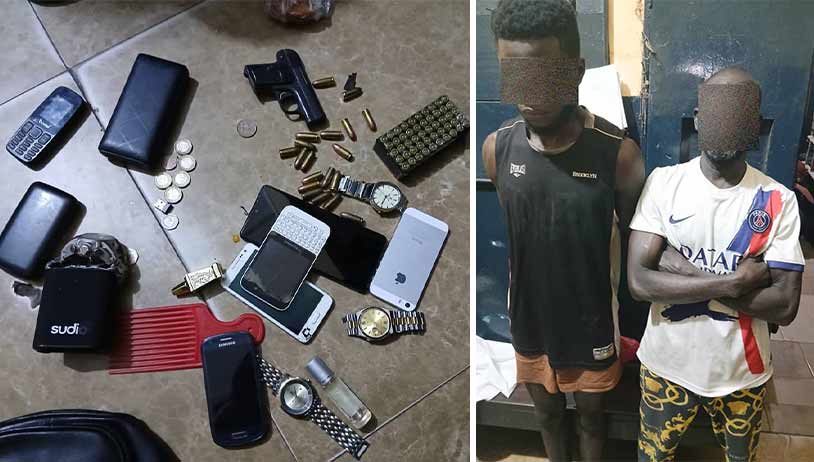 Two men have been arrested by the Kaneshie Divisional Police Command for the unlawful possession of a firearm and ammunition following a patrol operation at the Kwame Nkrumah Circle in Accra.