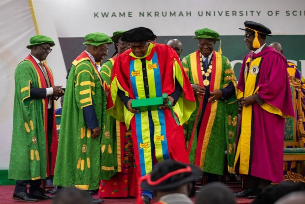 A distinguished alumnus and a world-renowned oil and gas certified engineer, Dr. Ben K.D Asante demonstrated exceptional dedication to the advancement of KNUST and the Engineering Profession and contribution to humanity, academia and selfless devotion to Ghana. The event was graced by the Vice President of Ghana, Naana Jane Opoku-Agyemang, Chancellor of KNUST Asantehene Otumfuo Osei Tutu II, Ashanti Region Minister Dr. Frank Amoakohene, captains of industry, academia and other dignitaries.Speaking at the event, the KNUST Vice Chancellor stated that the honour was not only a celebration of an accomplished alumnus but also a reaffirmation of the University’s commitment to driving national transformation through academic excellence, technology, and strategic partnerships.According to the KNUST, Dr. Ben K.D. Asante has provided engineering services, project management and technical support for various projects to internationally reputable institutions such as the World Bank and Asian Development Bank. In October 2023, at the invitation of the United Nations, Dr. Ben Asante made a remarkable presentation on Africa’s Energy Transition options at UNCTAD’s Experts forum on Energy.“Ghana benefited tremendously from your expertise as the technical director of its first Gas Infrastructure Project, responsible for Engineering, construction and Operations.” Dr. Ben Asante is on record to have developed the Gas Infrastructure Master Plan for Ghana, working with the Energy Commission and the Ministry of Energy. The prestigious honour was conferred by the Chancellor, His Royal Majesty Otumfuo Osei Tutu II, and supported by the Vice Chancellor, Professor (Mrs.) Rita Akosua Dickson, during the climax of the University’s 59th Congregation ceremony on Saturday, November 29, 2025, in Kumasi.