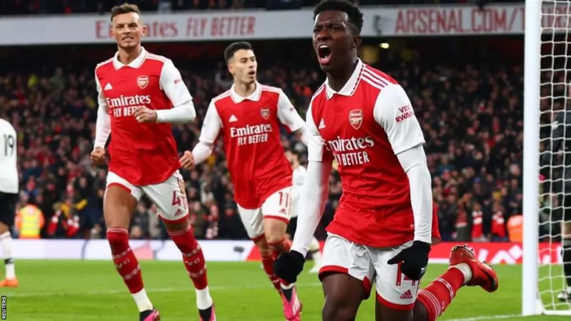Arsenal retained control of the Premier League title race after Eddie Nketiah’s 90th-minute winner gave them a dramatic victory over Manchester United in a thriller at Emirates Stadium.