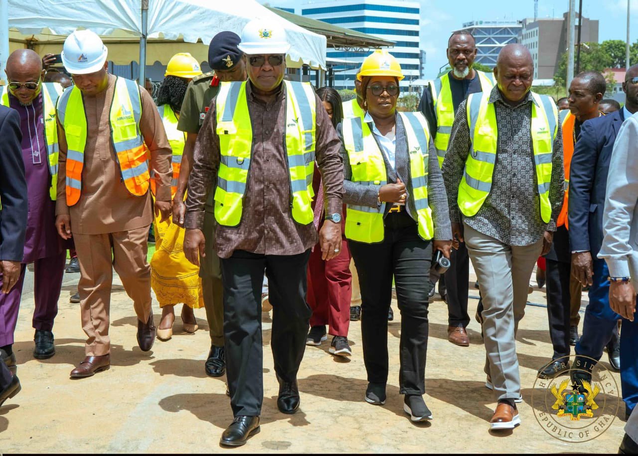 In the company of some engineers and government officials, President Mahama was at the facility to ascertain the extent of damage of last Thursday’s fire and work being done by engineers on the ground.