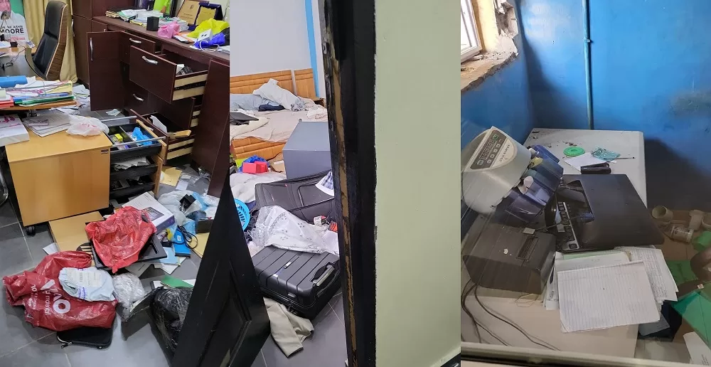 The Regional Chairman shared pictures of what appeared to be vandalised rooms of papers, office equipment, clothes and personal belongs.