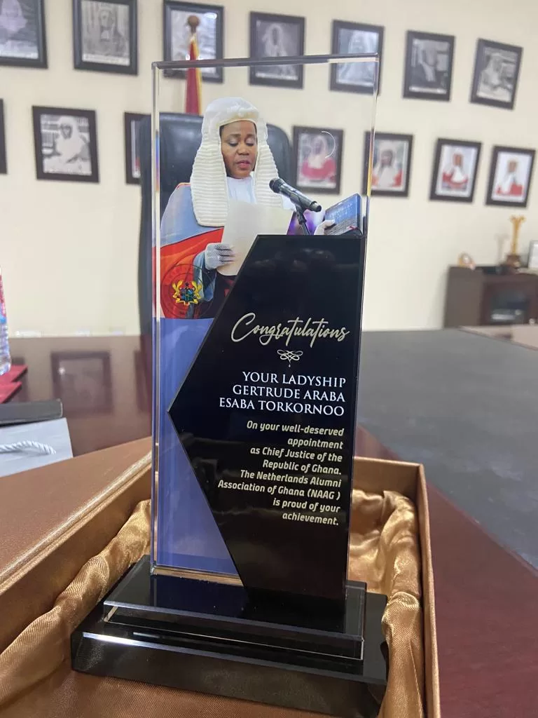 “On behalf of the Netherlands Alumni Association of Ghana (NAAG), I congratulate your Ladyship Justice Gertrude Araba Esaaba Torkornoo on this great feat of occupying the fourth highest position in Ghana,” President of NAAG, George Ofori-Atta remarked.