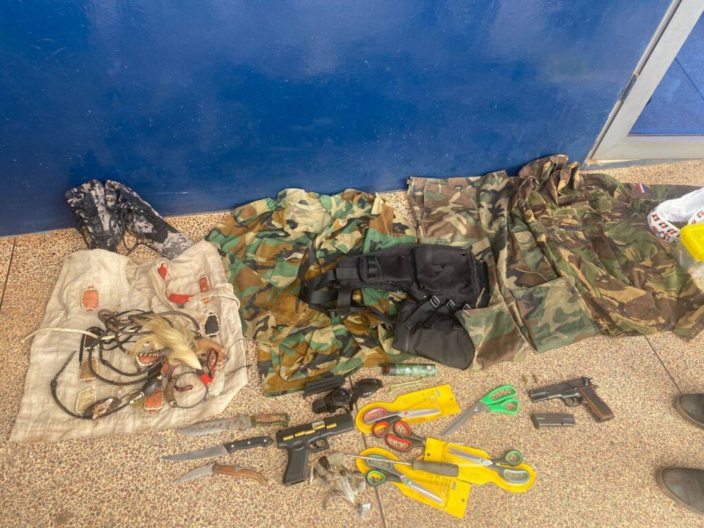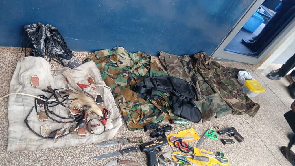 In a separate sweep, a Police Intelligence Directorate team arrested two other suspects, Latif Mustapha, also known as Star Boy, and Mosby Owusu in Domfete. Mustapha allegedly tried to escape by hiding in a ceiling. Police say they recovered military uniforms, a taser, knives, laptops, suspected narcotics and a toy gun from his room.