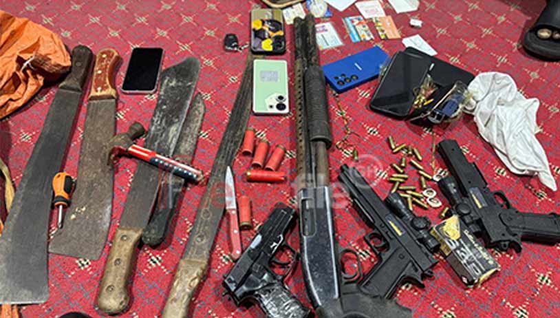 Exhibits retrieved include firearms, ammunition, machetes, knives, mobile phones and other items suspected to be proceeds of crime. Police said efforts were ongoing to track down remaining accomplices.