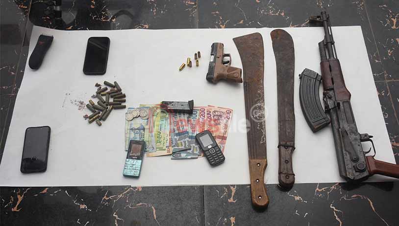 Police retrieved an AK-47 rifle, a Taurus pistol loaded with six rounds of ammunition, two cutlasses and two motorbikes, one of which was unregistered. All exhibits have been secured for investigations.
