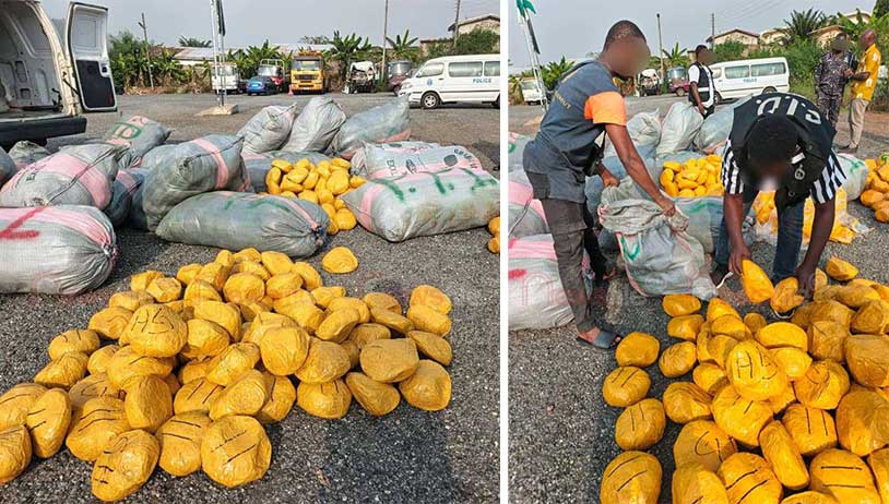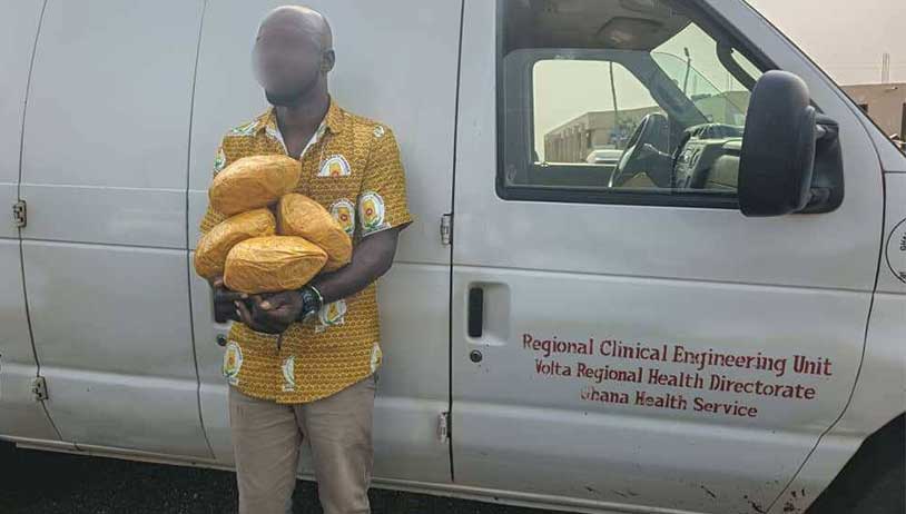 A coordinated team from the Ho Drug Law Enforcement Unit (DLEU), Police Intelligence Unit (PID), and Transport Unit pursued the vehicle through Ho and Tadzope before signalling it to stop at the Juapong Check Point. An initial search revealed two sacks, and further inspection uncovered 36 maxi sacks containing a total of 245.205 yellow oval-shaped wraps suspected to be Indian hemp. The estimated street value of the seized substances is GHC 1,022,500.