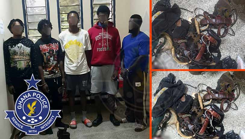 The suspects identified as Iddrisu Abdalla, 20; Abdul Rahaman Abubakar, 21; Okasha Mohammed, 19; Toffic Bawa, 24; and Richard Gyapong, 35 were picked up during an intelligence-led surveillance operation, according to the command, part of the Ghana Police Service.